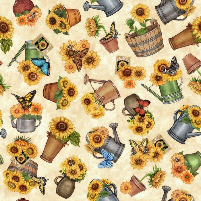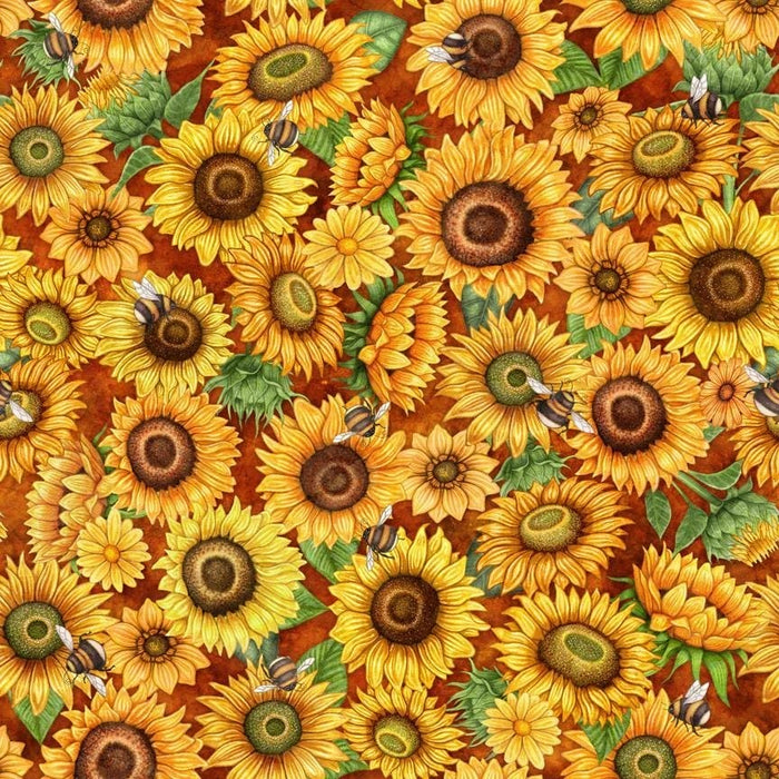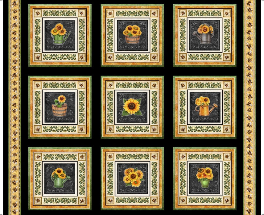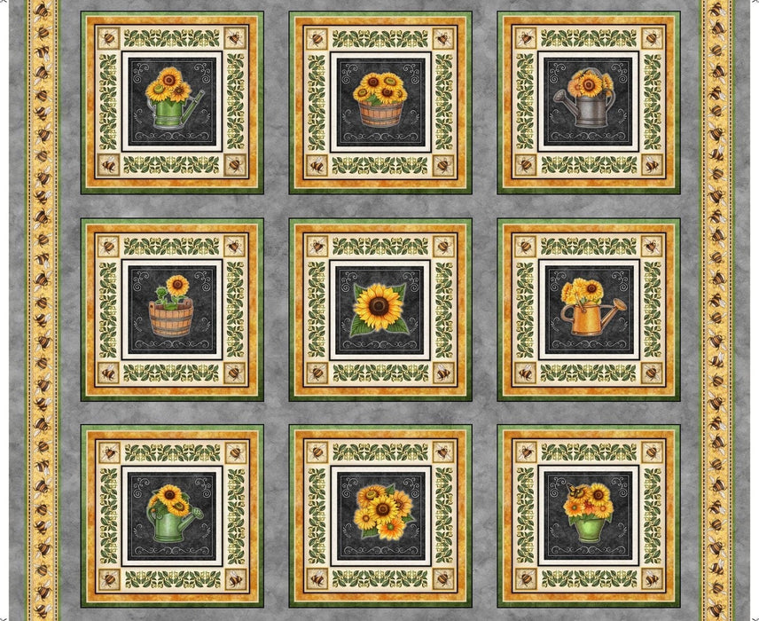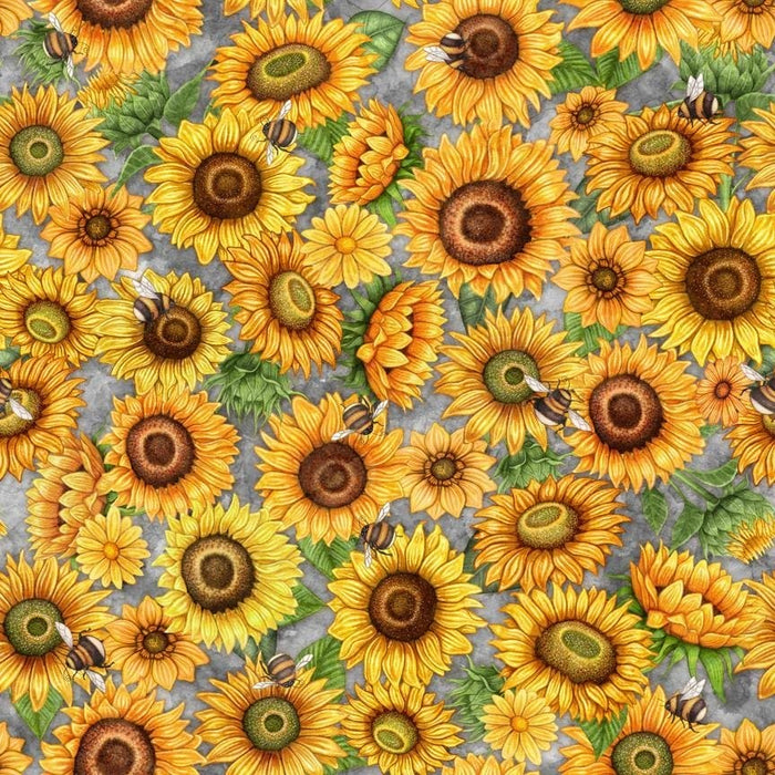 Share some sunshine with ©Dan Morris’ new collection featuring a garden favorite, the sunflower. The 36” sunflower panel sets the stage for this inspiring, vibrant collection and is accompanied by detailed sunflower coordinates, a sweet bee toss and textural prints to complete the group. Perfect for cheerful quilts, kitchen and home décor projects.