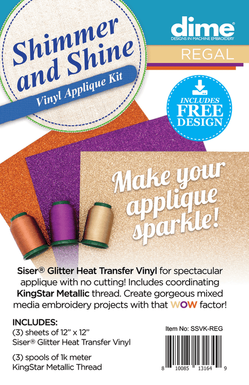 No reviewsShimmer and Shine Vinyl Applique Kit - Regal - DIME - SSVK-REG Make your applique sparkle! Shimmer and Shine combines two of the hottest product...