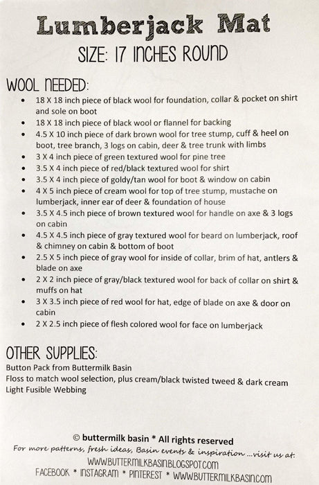 New! Lumberjack Mat - Pattern - Table Mat- Primitive - Buttermilk Basin - Flannel