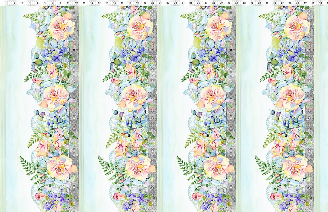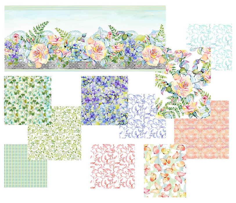 Patricia is a beautiful new collection of flowers, vines, butterflies and more with a water-color look in gorgeous pastels. Complete with stunning detail and great tone on tone coordinates, it's sure to be the perfect collection for your next project!