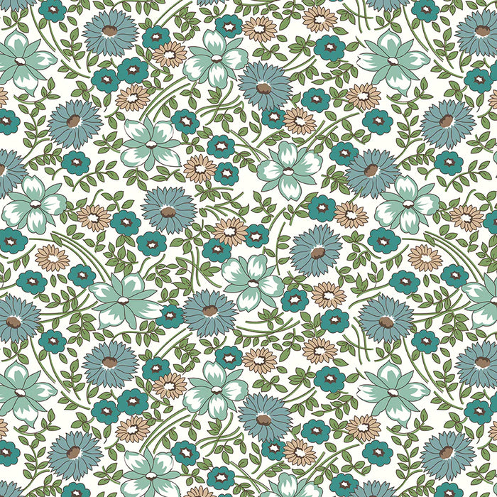 Wide Back Prairie Flower - Teal - REMNANT - Lori Holt - Bee in my Bonnet - Riley Blake - Basics