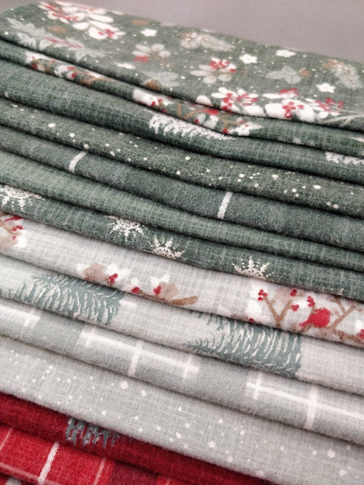 The fabric in this bundle is a brushed cotton. Brushed cotton has a much softer hand, created by brushing the surface of the fabric at the end of its production process. This fabric is just as soft as flannel, but without the weight!