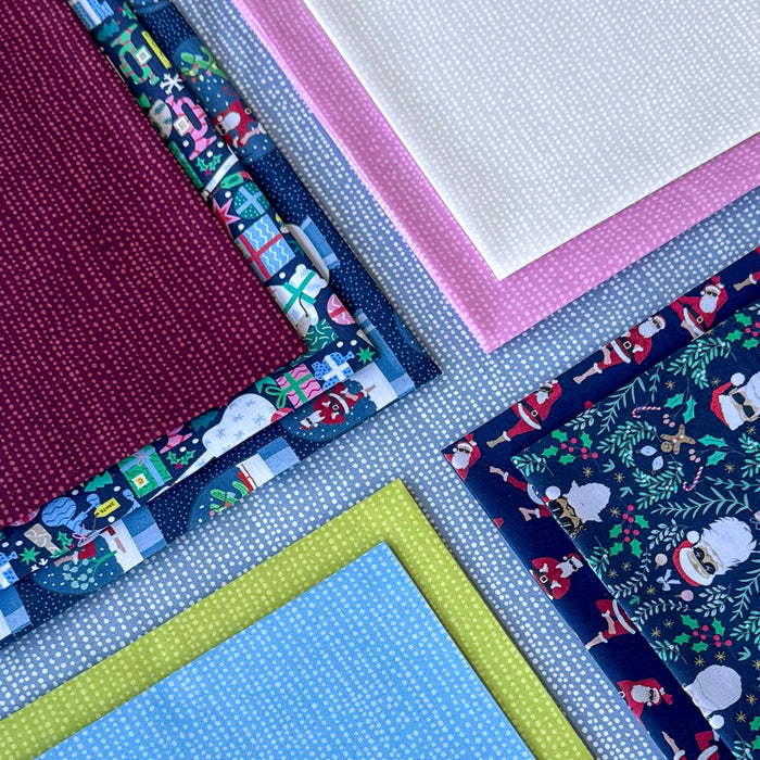 This half yard bundle contains (4) 18" x 42" half yards from the Nama Santa collection as well as (6) 18" x 42" coordinating blenders!