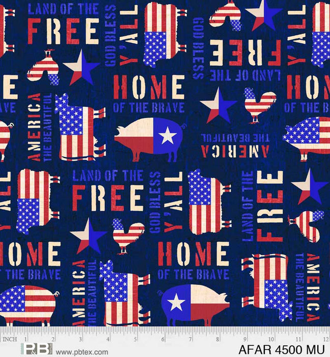 American Farm - Block PANEL - Per Panel - by Michael Mullan for P&B Textiles - Sayings, Signs, Flag - 24" X 43" panel- AFAR 4499 PA