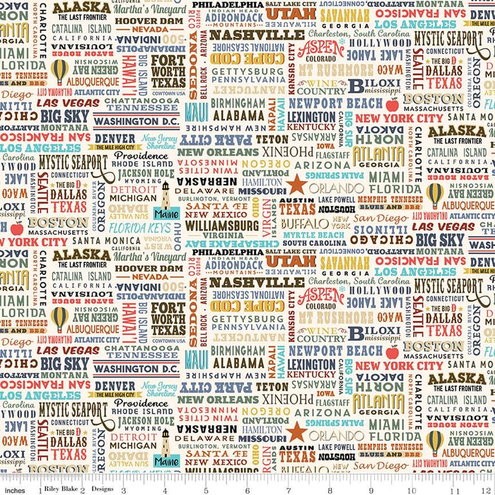 "Riley Blake Designs has teamed up once again with Anderson Design Group to bring you the Destinations collection. This stunning collection evokes a nostalgic, yet modern feel of worldwide cities we dream about and travel to - New York, Paris, London, Lake Tahoe, and more. To complement the travel posters, we've designed a map print as well as word clouds of both worldwide and domestic destinations. Whether on your "been there" list or your bucket list, the Destinations collection will inspire you to travel, to create, and to make memories for years to come." -RBD