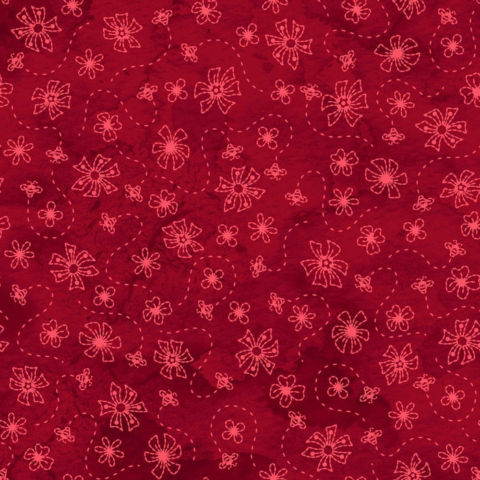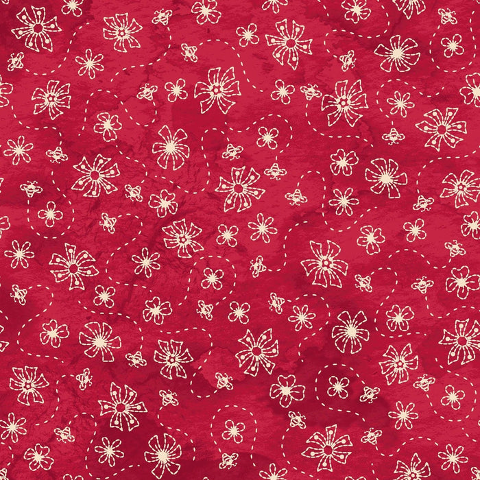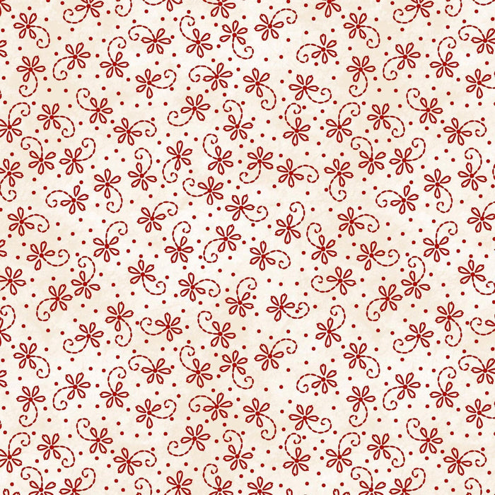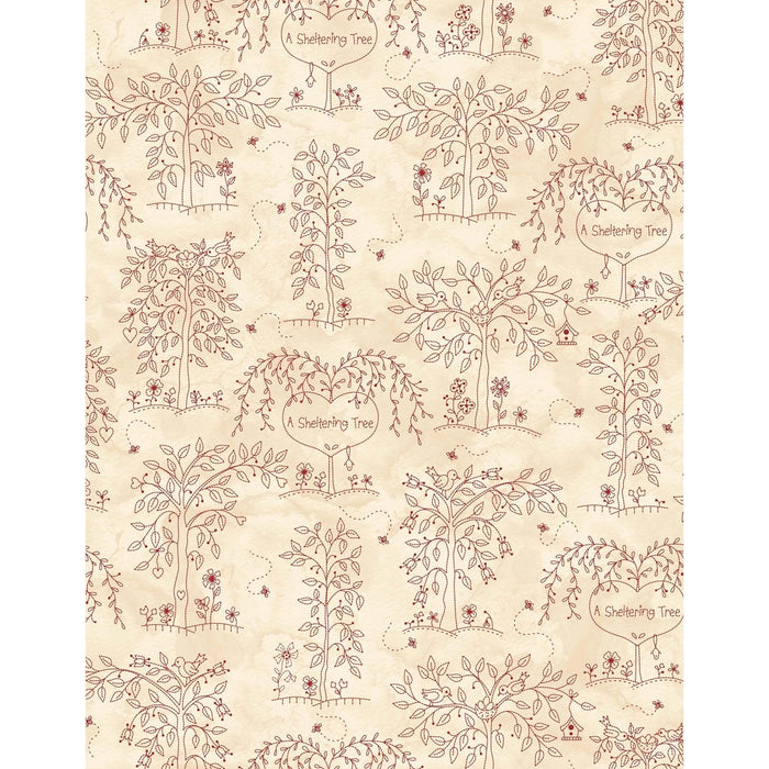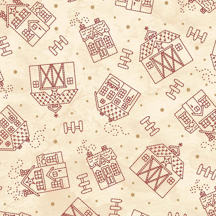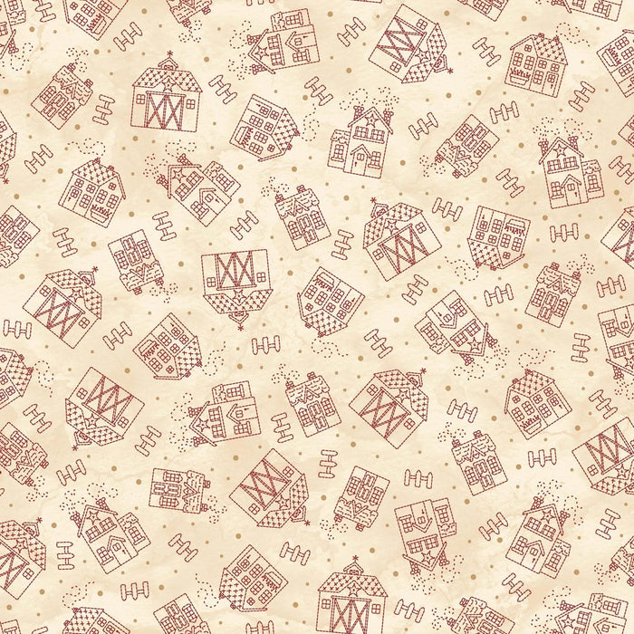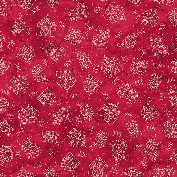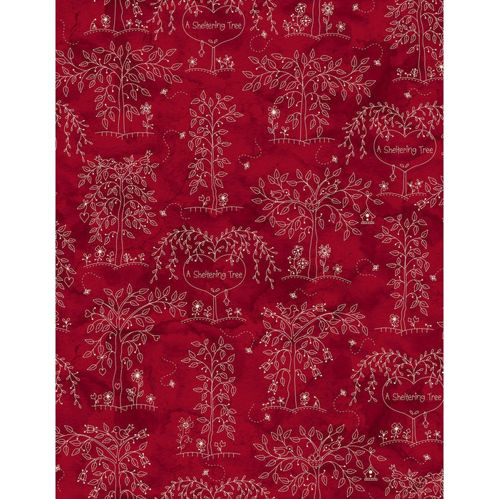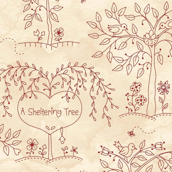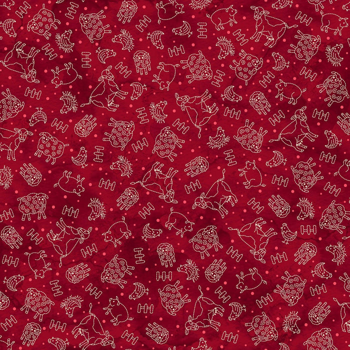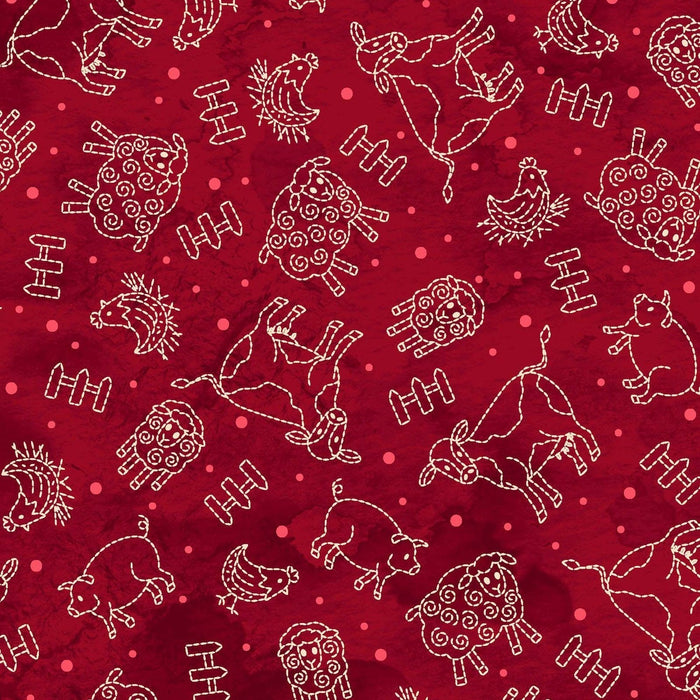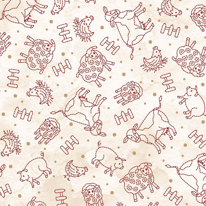 Robin Kingsley is back with another fabulous Redwork collection! Her prints filled are with delightful details and she has created a wonderful panel in two colorways featuring the main tree surrounded by farm animals and charming houses. There are subtle shifts in hue in value throughout the collection that are intended to give your projects variety while staying true to a red and white theme.