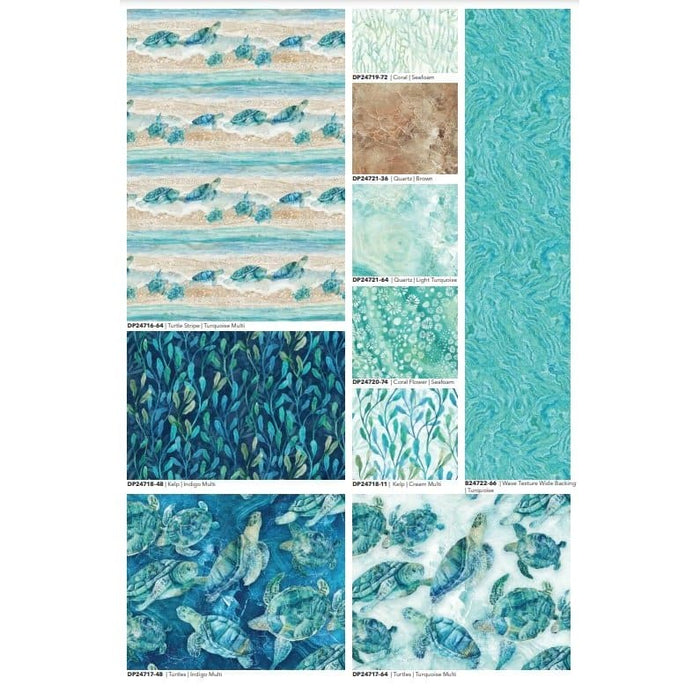 About the Fabric: Turtle Bay by Deborah Edwards and Melanie Samra lets you take a dive underwater and swim side by side with small turtles in a collection filled with cobalts and aquas. It has digitally printed scenes of the ocean and sea turtles in stunning blues, teals, indigos and neutrals. Such amazing detail of the ocean and sea life!
