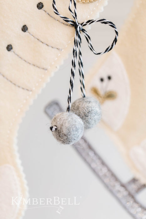 Kimberbell’s Winter Wonderland Wool Felt Balls add a pleasing dimensional pop to machine embroidery, sewing, and crafting projects! Warm colors include Buttermilk and Smoky Grey, with 18 balls of various sizes. As featured in our Winter Wonderland Two-Day Machine Embroidery Event, Wool Felt Balls are delightful embellishments for in-the-hoop projects like the Dream Skate Felt Stocking, as well as garlands, quilts, and so much more!