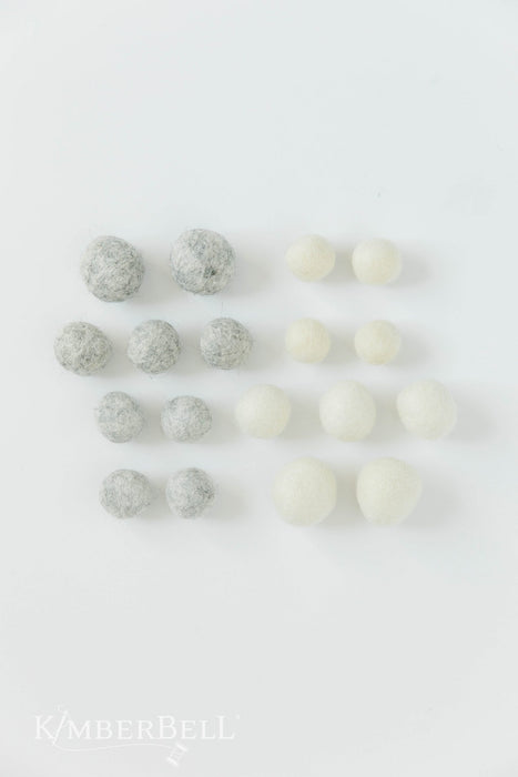 Winter Wonderland Wool Felt Balls - Buttermilk & Smokey Gray - by Kimberbell Designs - (18) 100% Wool Felt Balls - KDKB1215
