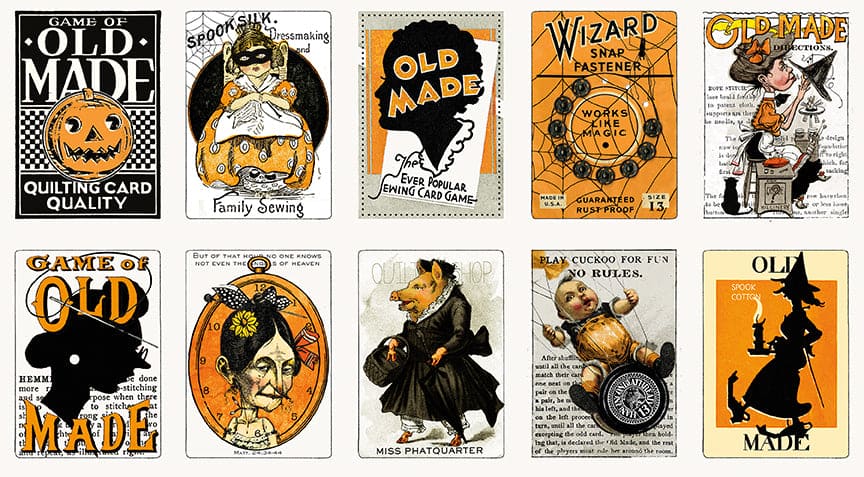 The idea of an Old (Maid) Made inspired deck of cards whose characters were sewers, quilters and makers came to me years ago. As I began researching vintage sets, a rare antique deck turned up for sale. These and a few random misplaced cards are the ones I chose to digitally manipulate into the collection you see in this art group. I am delighted with the results!