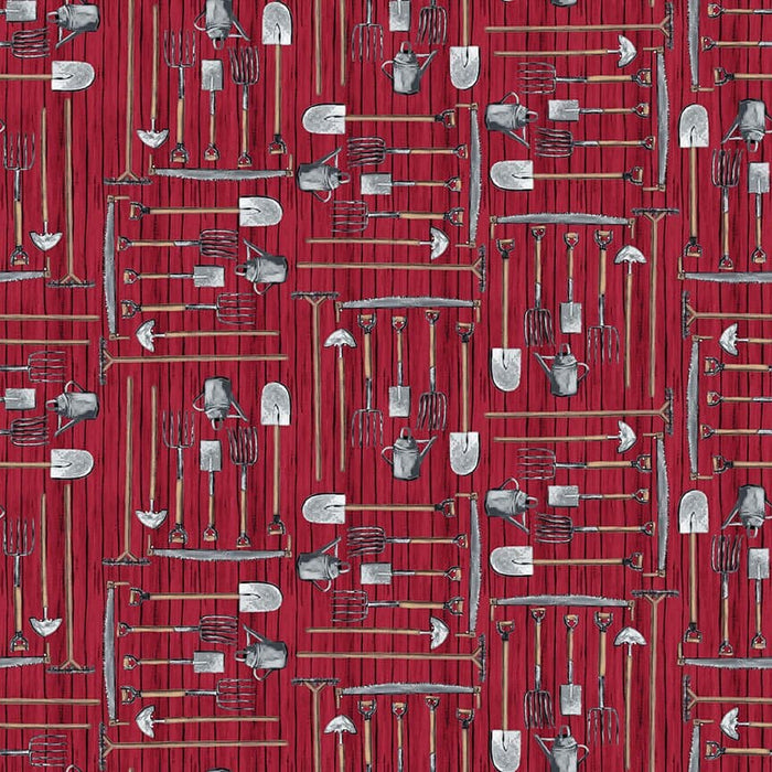 French Hill Farms - Farm Tools - Per Yard - Michelle Norman - Blank Quilting - Red - 1850-88