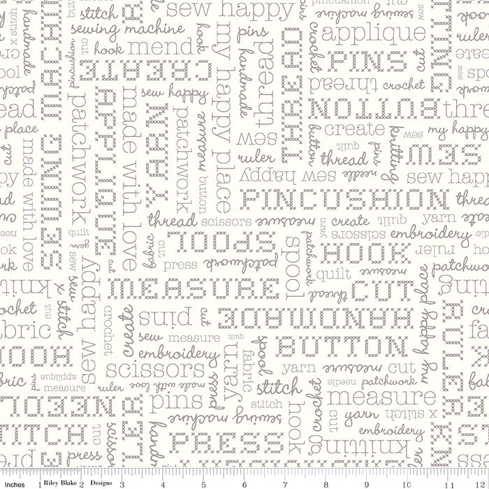 Stitch by Lori Holt of Bee in my Bonnet for Riley Blake Designs is great for quilting, apparel and home decor. This text print features sewing and crafting themed words.