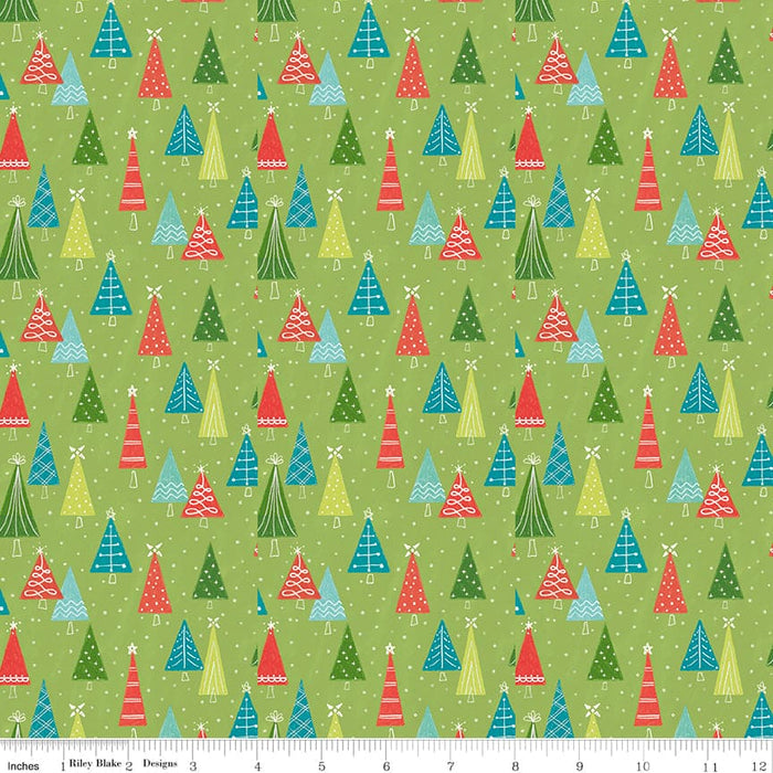 Snowed In - Coral Snowed In Trees - per yard - by Heather Peterson - for Riley Blake Designs - Christmas, Snowmen, Winter - C10814-CORAL