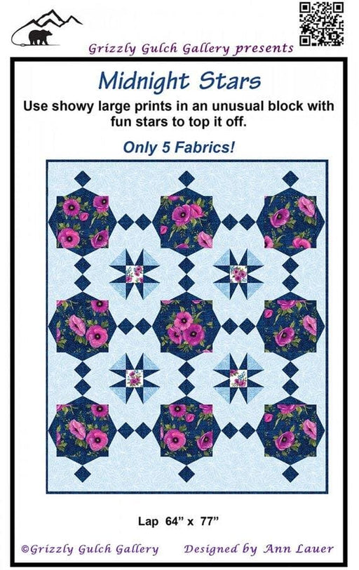 Original price $ 176.00Original price $ 176.00 - Original price $ 176.00Original price $ 176.00Current price $ 157.00$ 157.00 - $ 157.00Current price $ 157.00Midnight Stars Quilt Pattern by Ann Lauer - Lap Quilt pattern - Grizzly Gulch Gallery - Uses large prints! Blocks are 12.5" square