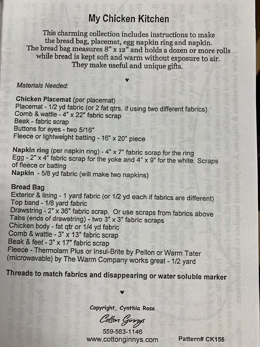 My Chicken Kitchen - Pattern - Cotton Ginny's - Cynthia Rose