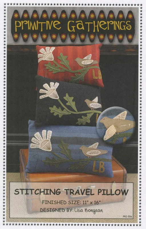 2 reviewsStitching Travel Pillow - Primitive Pillow pattern- Primitive Gatherings -Lisa Bongean -Primitive, Wool applique, precut friendly #556 11" x 16" Th...