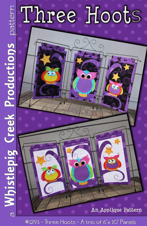 2 reviewsThree Hoots - Pattern - A trio of 6" x 10" applique hooters. Wall Hanging by Whistlepig Creek Productions Makes fun table topper. They are also a...