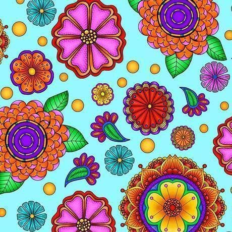 CARNIVALE fabric collection - Quilting Treasures - Debi Payne - Small Tossed Flowers on Turquoise - per yard
