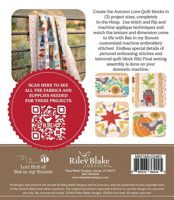 Autumn Love Quilt - MACHINE EMBROIDERY FABRIC KIT - by Lori Holt of Bee in my Bonnet - Riley Blake Designs uses Autumn Fabric