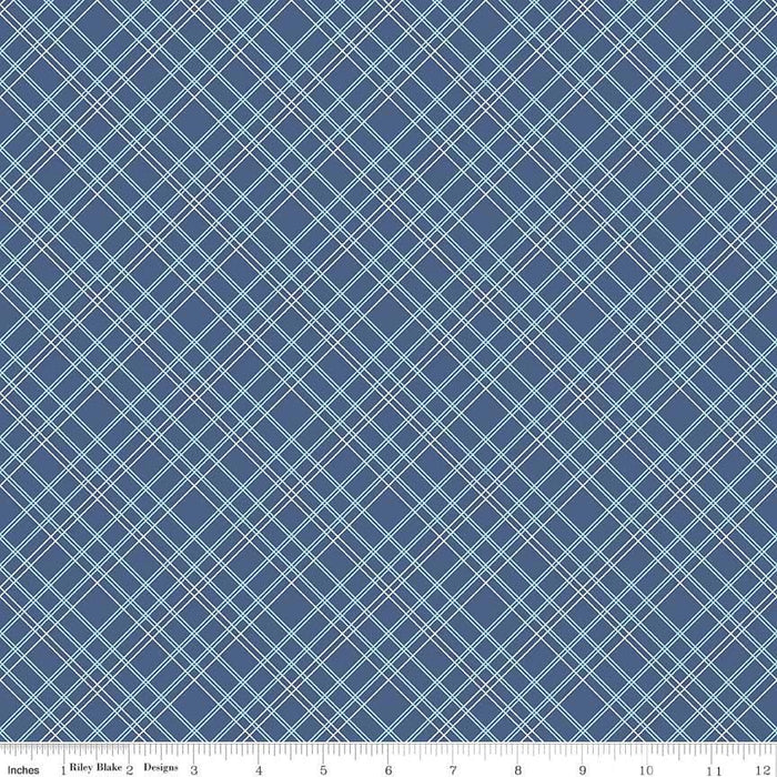 Bee Backings! - Quilt Back Fabric - Riley Blake - by Lori Holt - 108" wide Plaid on navy blue WB6422-BLUE