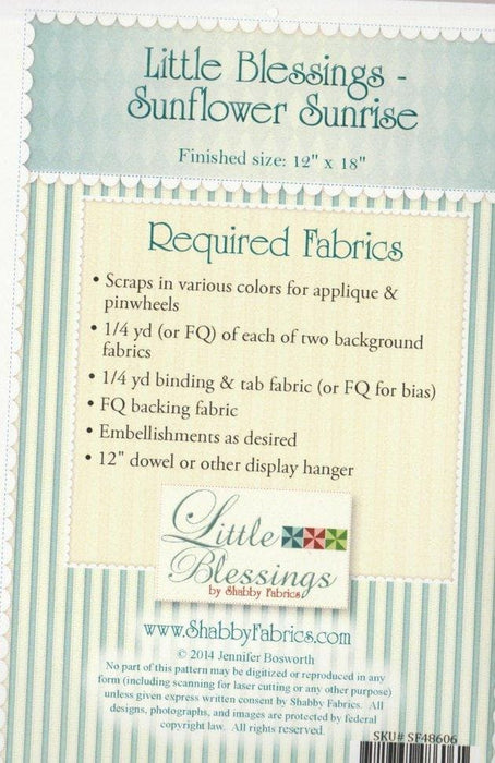Little Blessings Wall Hanging- Pattern - by Shabby Fabrics - 12" x 18" - Sunflower Sunrise