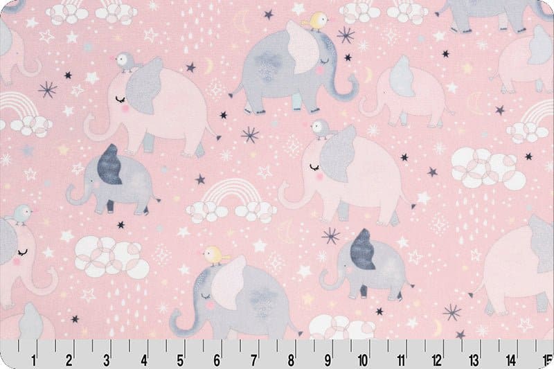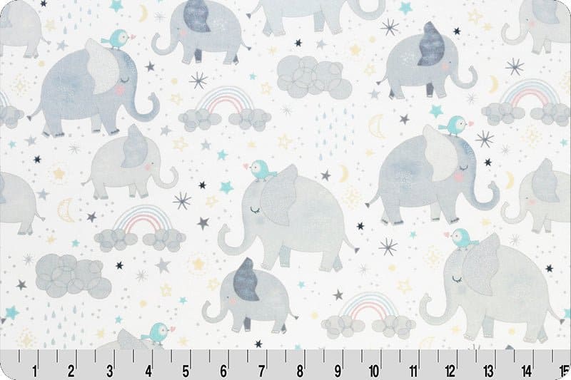 There's nothing more special than the bond between a mother and her child. This darling print features mama elephants and baby elephants meandering through rainbows, stars and moons (and cute little birds are along for the ride, too). This minky plush fabric will be an inseparable naptime companion for any little baby boy or girl.