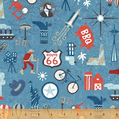 Travel Across the USA making stops along the way on iconic Route 66. Find your state in the all-over States print, fussy cut your favorite tourist destinations and mix and match with country plaids, mod triangles and versatile textures.