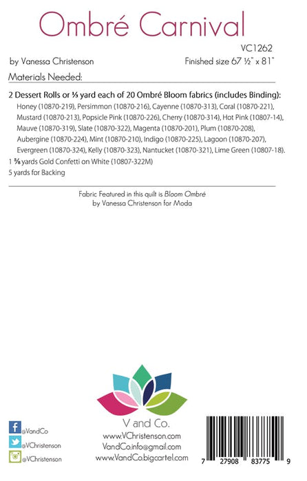 Ombre Carnival - Quilt PATTERN - Vanessa Christenson - V and Co. - pieced - VC 1262