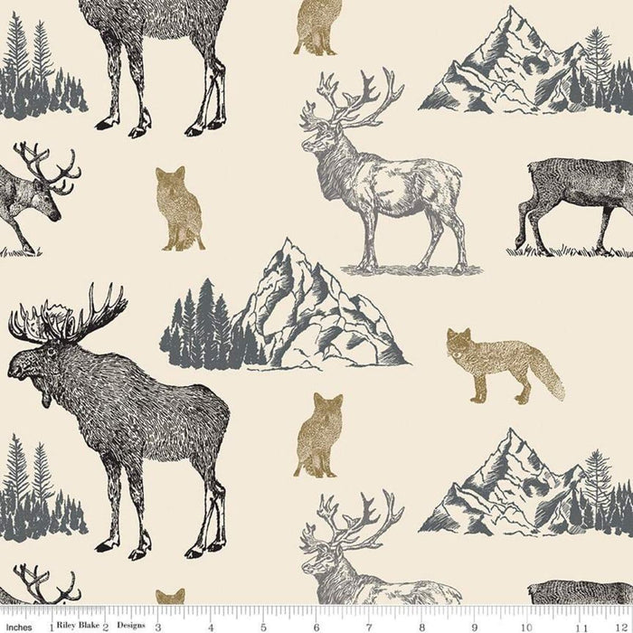 Timberland - per yard - for Riley Blake Designs - Outdoors - Wildlife - Mountains Cream - C10331-CREAM