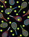Cheer Squad -Tossed Tennis Gear - per yard - Timeless Treasures - tennis rackets and balls - GAIL-C8778-BLACK