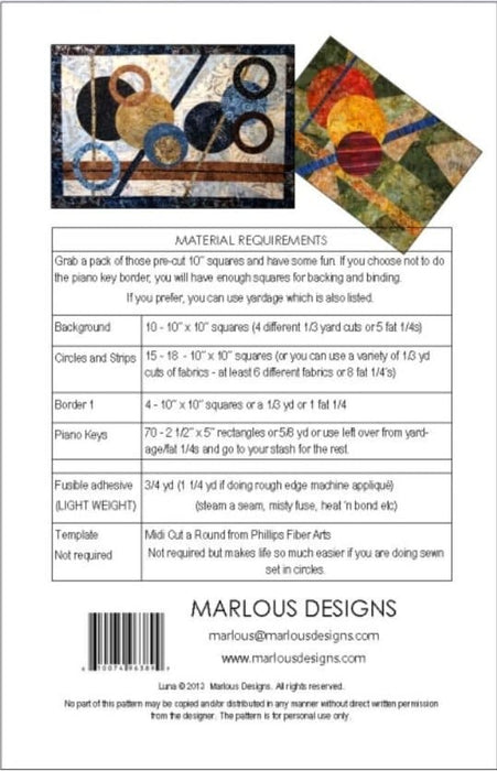 Luna - PATTERN - Marlous Designs - Layer cake friendly! - MDTR 15
