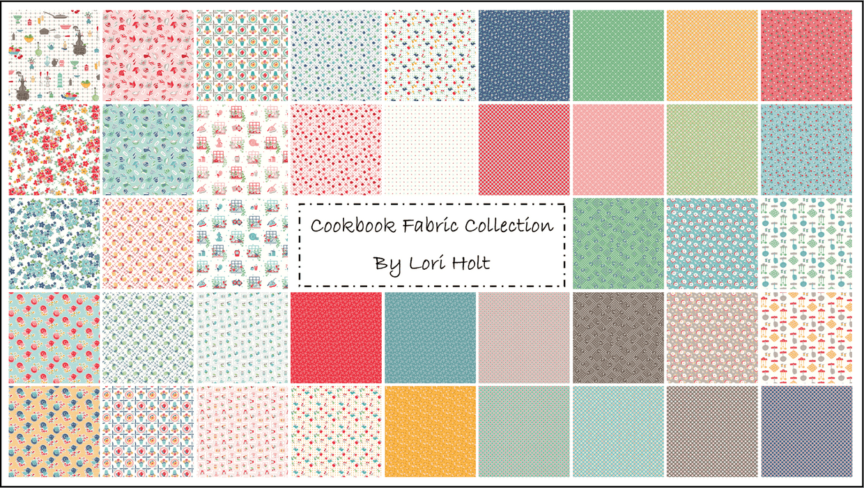 Lori Holt's newest collection Cook Book is all about cheerful vintage prints that Lori's grandma and her sisters would have used to sew useful and beautiful things for the heart of their homes... which was the kitchen.