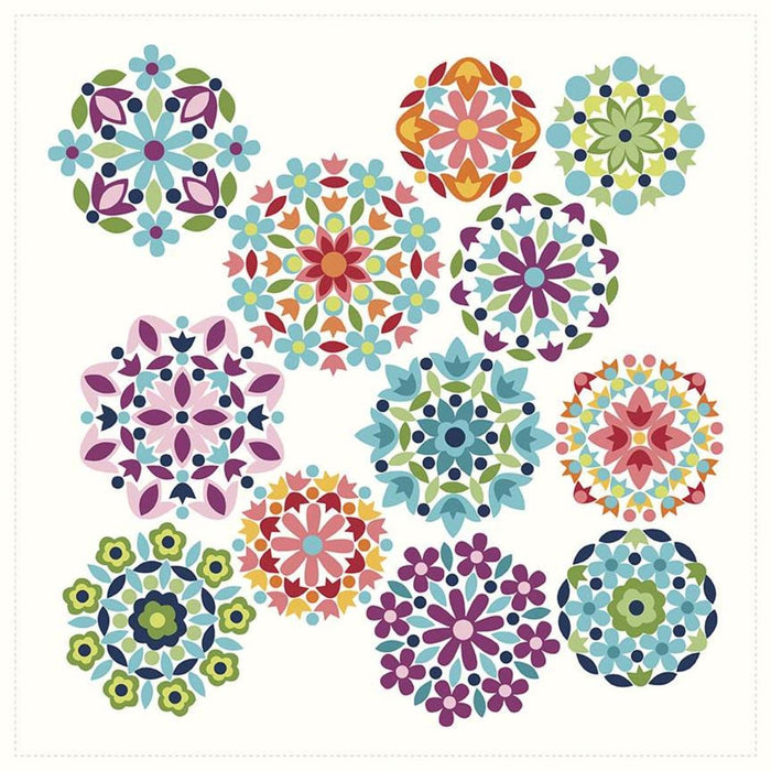 The Gem Stones Bright Rosette Panels by Gerri Robinson of Planted Seed Designs for Riley Blake Designs are great for quilting and home decor. Fun bold colors!