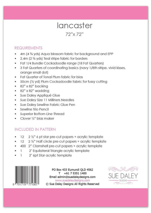 Lancaster Quilt - Quilt Pattern - by Sue Daley Designs - English Paper Piecing
