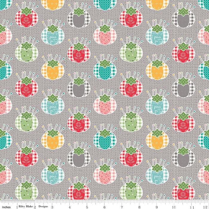 My Happy Place - Home Decorator Fabric - Sewing Pins Pink - per yard - Lori Holt for Riley Blake designs - 57/58" wide - HD11215 Home decorator weight fabric from Lori Holt for Riley Blake Designs. These are new patterns that coordinate and compliment the earlier home decor fabrics curated by Lori Holt in 2019.