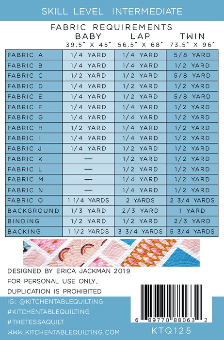 NEW! The Tessa Quilt - PATTERN - by Erica Jackman - Kitchen Table Quilting - 3 Sizes - KTQ125