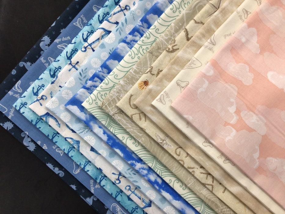 Ocean - PROMO Fat Quarter Bundle - (12/1) 18" x 21" pieces - the Sea and Ocean prints plus one panel