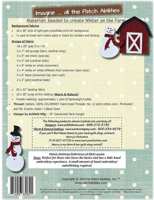 Winter on the Farm Pattern! - - designed by Julie Wurzer - Patch Abilities, Inc - Quilted wall hanging - 16" x 28" - P218