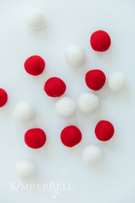 Wool Felt Balls - Red & White - by Kimberbell Designs - (16) 1" 100% Wool Felt Balls - KDKB1239